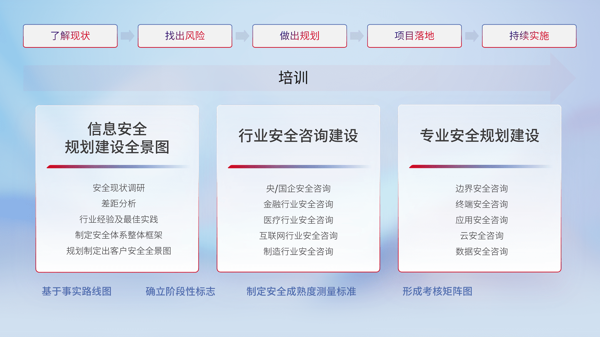 梳理客户信息安全现状调研、、差距分析结果,,结合行业先进经验及最佳实践,,,,制订客户的信息安全管控体系总结架构,,最终形成一个完整的客户信息安全规划与建设的全景图。。。