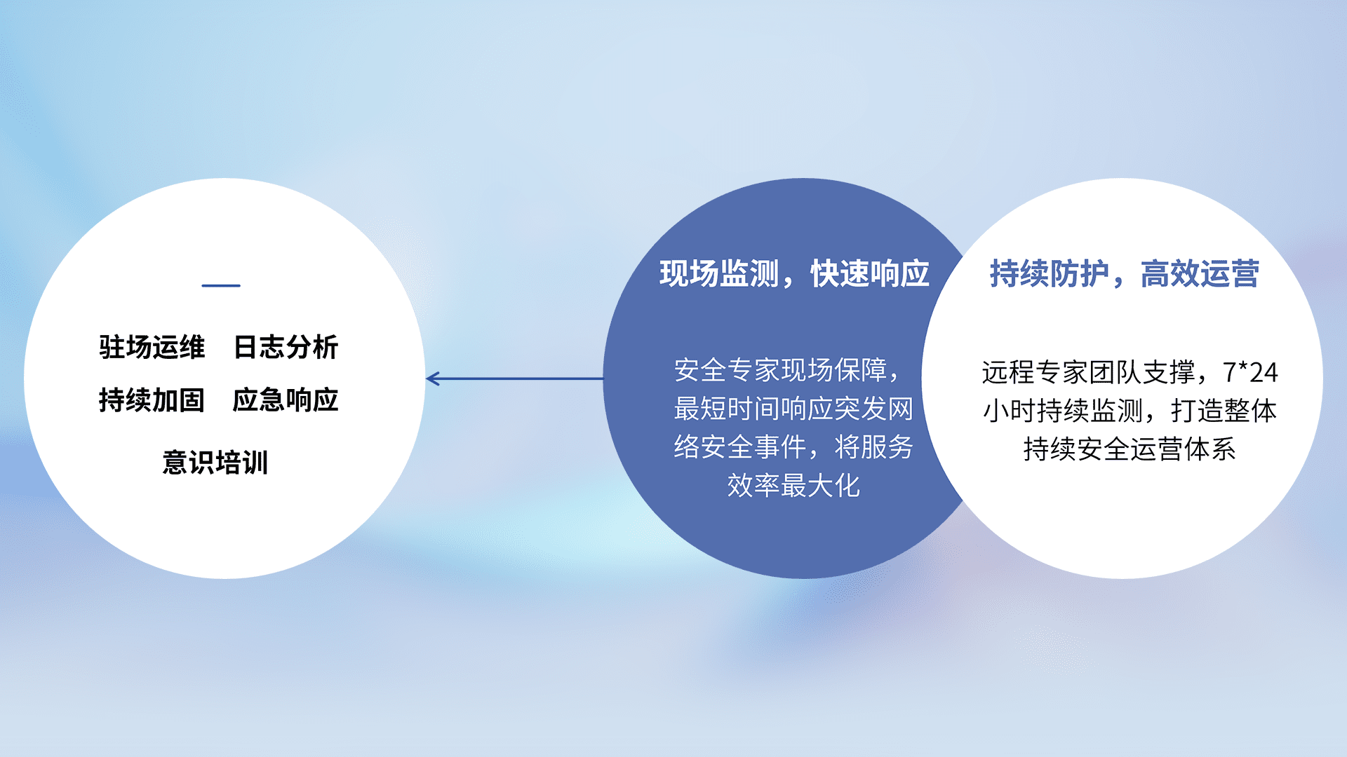 针对客户行业特性,,提供专属的一站式安全管理服务,,,帮助客户全面感知网络空间威胁,,,,通过安全专家的线上、、、、线下防护支持,,,,实现风险闭环,,将安全保障常态化,,为客户打造常态化安全运维运营服务。。。。